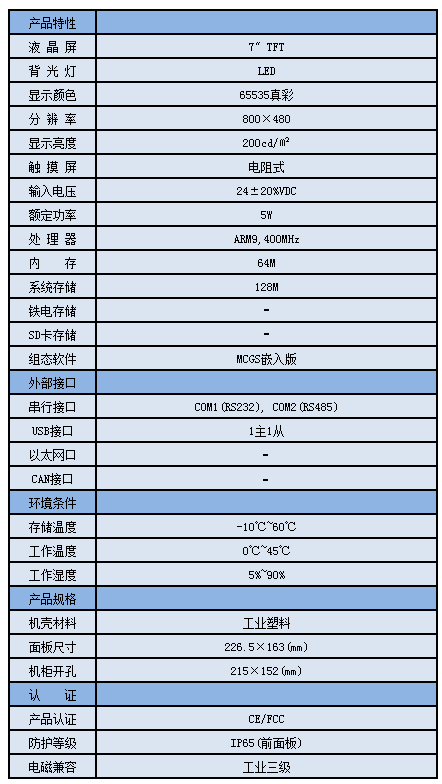 TPC7062KX,是一套以嵌入式低功耗CPU為核心(主頻400MHz)的高性能嵌入式一體化觸摸屏。該產品設計采用了7英寸高亮度TFT液晶顯示屏(分辨率800×480),四線電阻式觸摸屏(分辨率4096×4096)。同時還預裝了MCGS嵌入式組態軟件(運行版),具備強大的圖像顯示和數據處理功能。