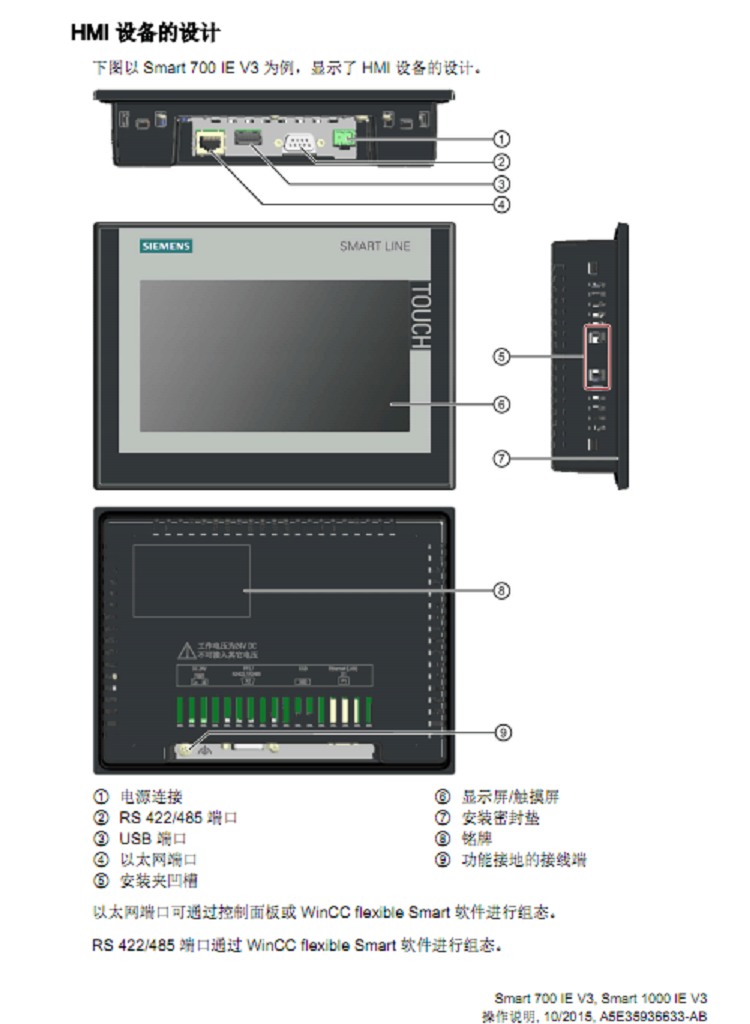 1、 西門子HMI SMART LINE V3系列寬屏7寸支持橫向和豎向安裝方式;